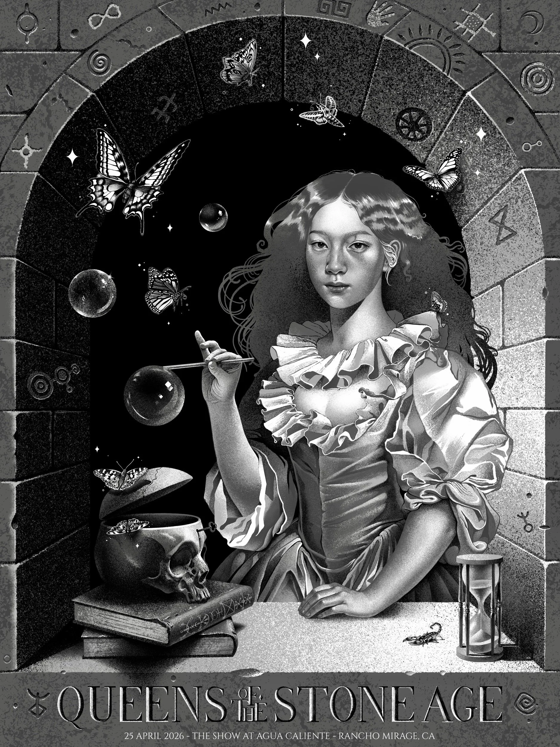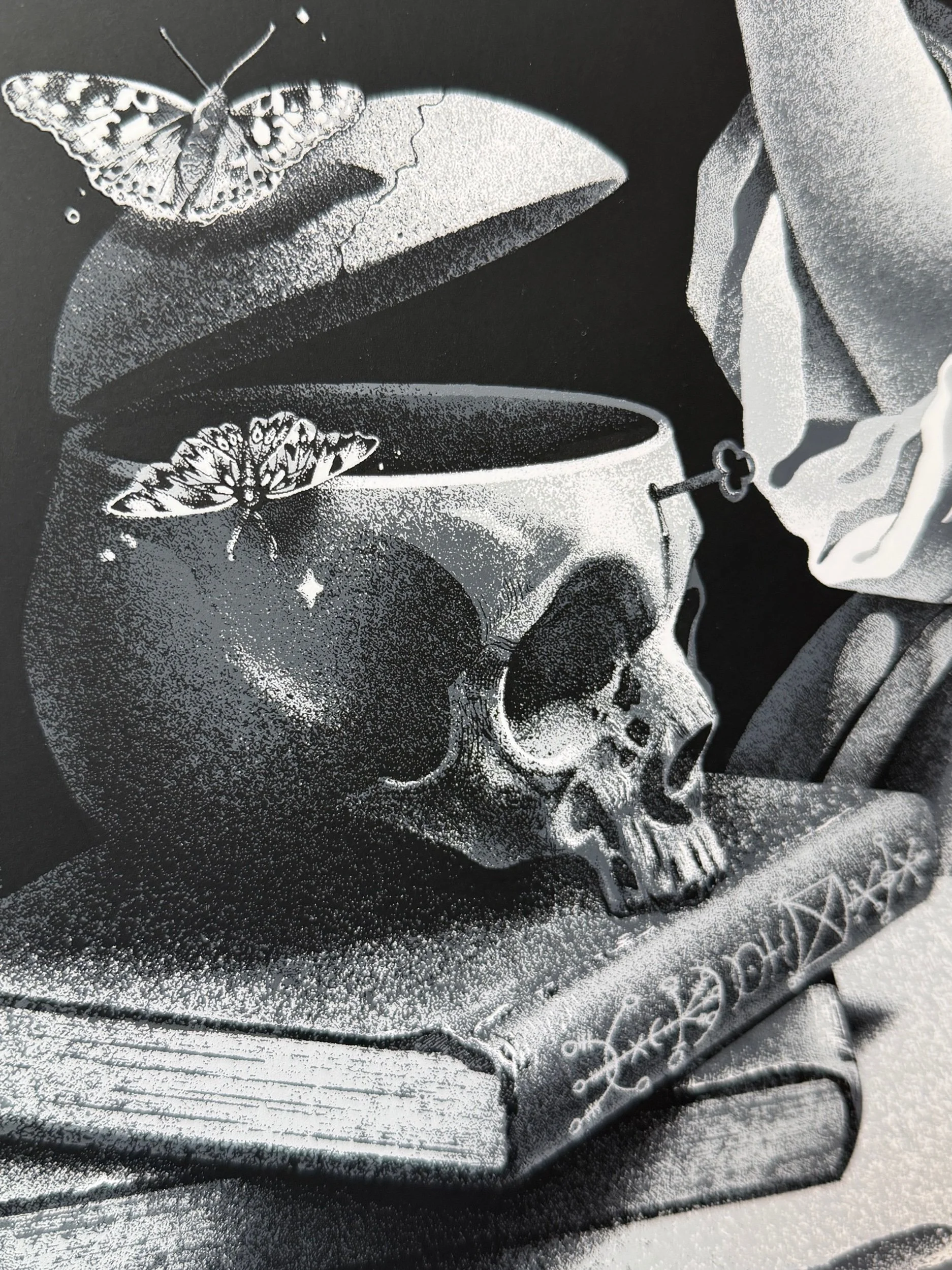 An 18x24” screen printed poster for the 2026 Alive in the Catacombs tour. Limited edition of 50 prints, signed and numbered by me. Glow in the dark details.
